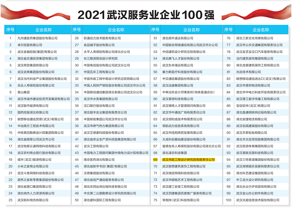 榮登“2021武漢服務業(yè)企業(yè)100強”