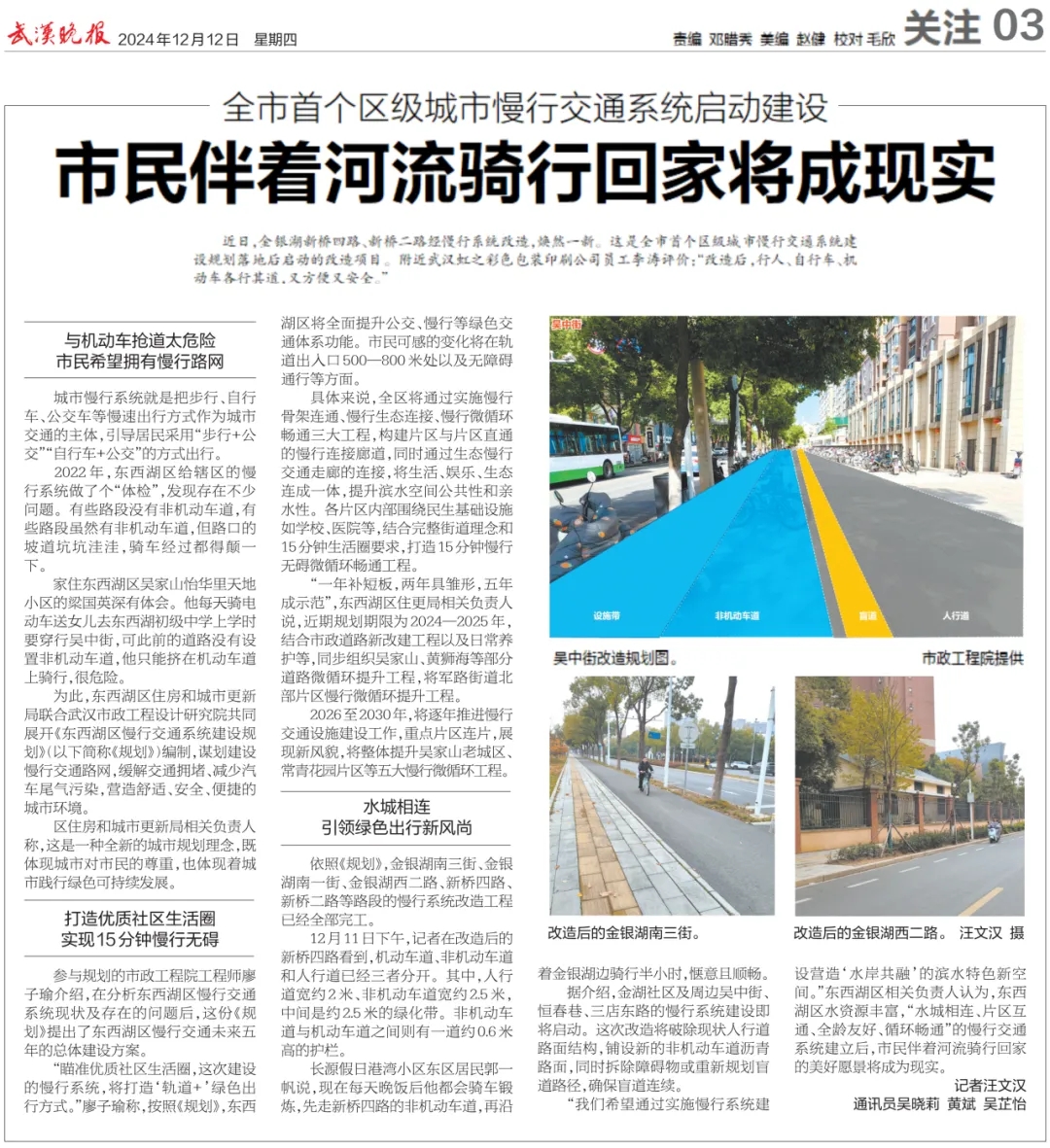 12月12日,《武漢晚報》等多家媒體紛紛報道《全市首個區(qū)級城市慢行交通系統(tǒng)啟動建設(shè)》。