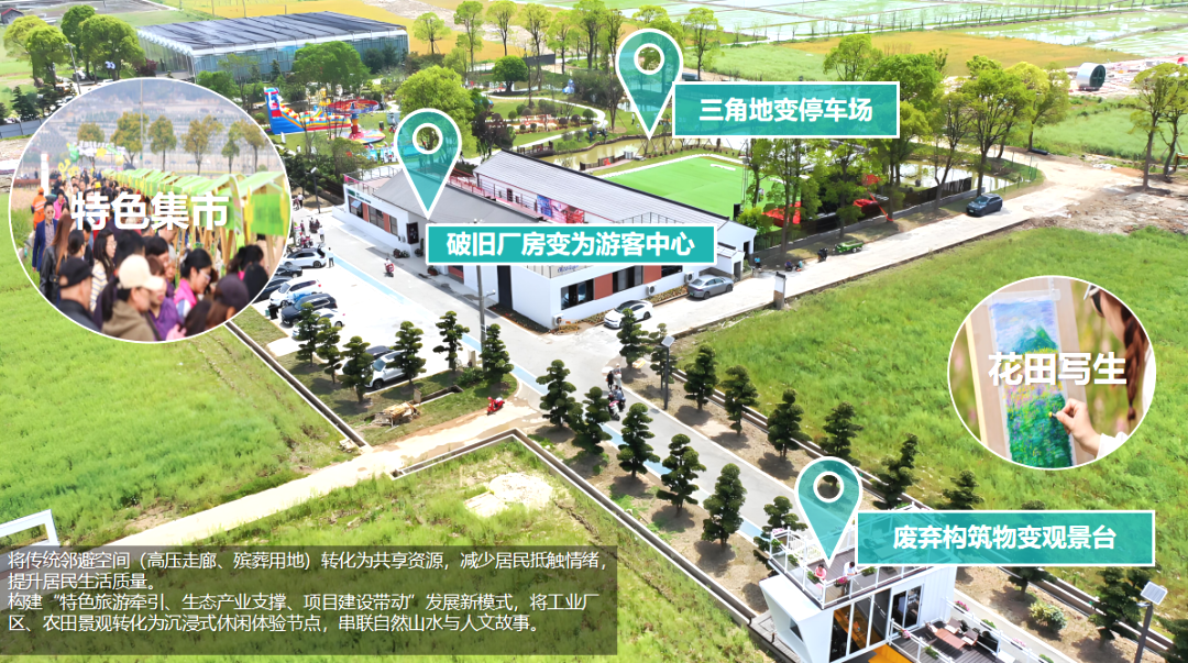“基于TRIZ創(chuàng)新理論的一種多重鄰避空間影響下的城邊村產(chǎn)城融合發(fā)展規(guī)劃技術(shù)”項目基于寧波北侖新碶街道村莊規(guī)劃編制實踐,對城邊村產(chǎn)城融合發(fā)展的深層矛盾進行科學(xué)拆解,精準(zhǔn)識別出“空間排他、物理割裂、功能受限、發(fā)展制約”四大關(guān)鍵矛盾。項目提出的“化鄰避為鄰利”技術(shù)方案,有效應(yīng)對土地供需不平衡、資源保護利用不協(xié)調(diào)等問題,提出“破解約束、產(chǎn)業(yè)升級、植入IP”的產(chǎn)業(yè)發(fā)展路徑,成功解決多重鄰避空間制約下的規(guī)劃發(fā)展難題,為新碶街道量身擘畫了“碶彩稻田”鄉(xiāng)村振興推進示范區(qū)和“稻田+”都市田園鄉(xiāng)村示范區(qū)的規(guī)劃藍(lán)圖。
