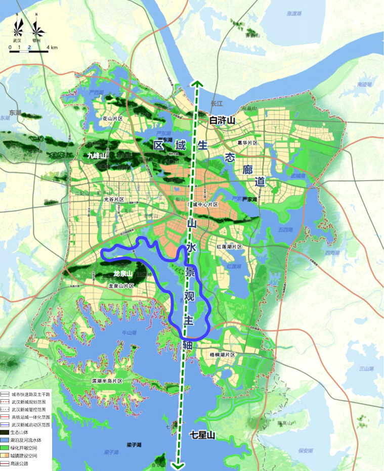 豹澥湖湖區(qū)生態(tài)緩沖體系構建圖(摘自武漢新城總體規(guī)劃)