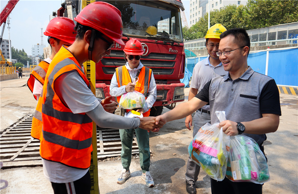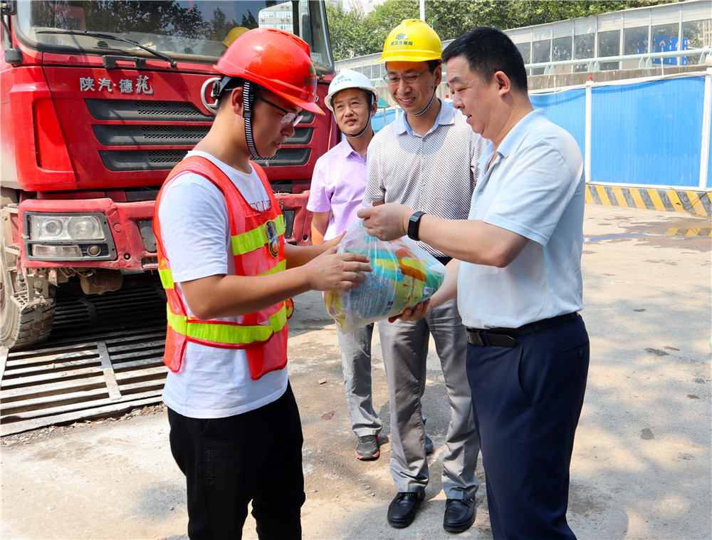 連續(xù)多日的高溫籠罩著武漢大地,然而公司勘測、監(jiān)理、檢測、項目管理等專業(yè)員工依然頂高溫冒酷暑,堅守在工程建設最前線。8月6日上午,公司黨委書記蔡輝、副總經理陳建斌帶領相關部門工作人員前往大東湖傳輸系統(tǒng)項目、武漢市軌道交通5號線工程、黃家湖綜合整治工程所在地,親切慰問奮戰(zhàn)在一線的員工,在炎熱的酷夏中為他們送去一份清涼。