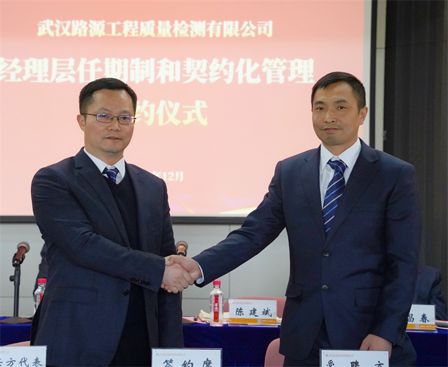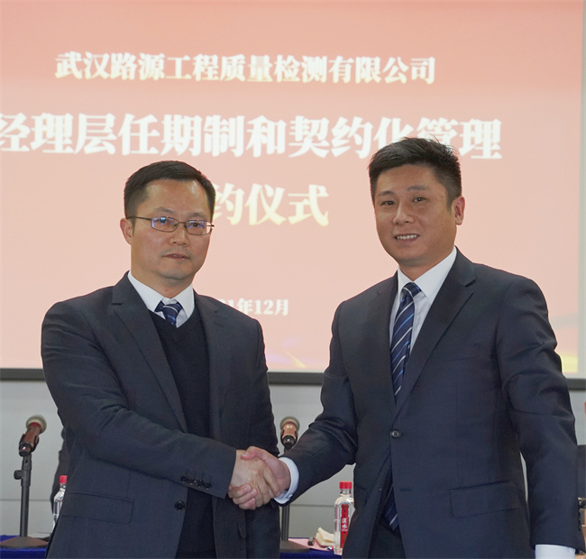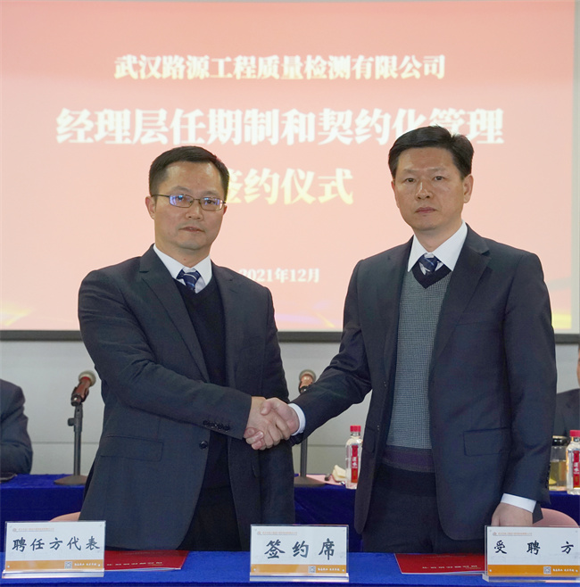 隨后,公司黨委書記、董事長(zhǎng)武興治與黨委副書記、總經(jīng)理陳建斌簽署崗位聘任協(xié)議書,陳建斌分別與公司經(jīng)理層成員和所屬武漢路源工程質(zhì)量檢測(cè)有限公司、武漢市宏建基礎(chǔ)設(shè)施建設(shè)有限公司經(jīng)理層成員簽署崗位聘任協(xié)議書。