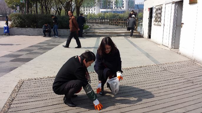??? 隨后,黨員們跟隨著區(qū)湖泊管理所的專家來到了公司附近的后襄河公園,開展了湖泊清潔活動。大家沿著湖邊行走,撿拾起路邊、湖邊的垃圾。湖泊管理所的專家以后襄河公園的湖泊現狀為例,講解了湖泊保護的常識。