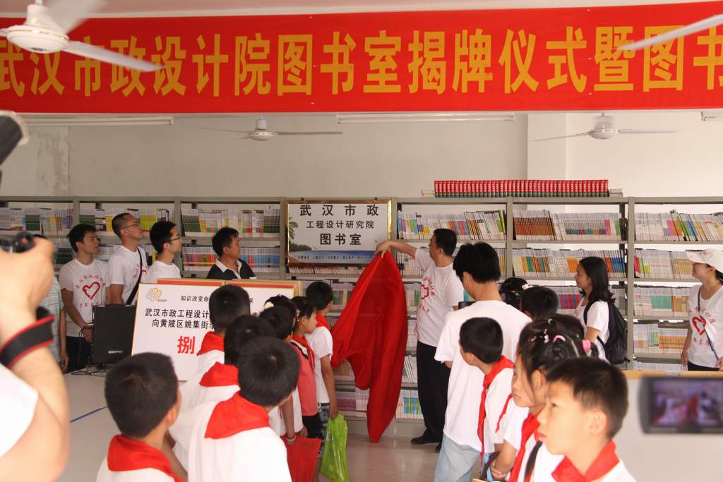??? 清晨,在公司黨委書記蔡輝、總經(jīng)理助理胡軍的帶領(lǐng)下,公司青年志愿者一行先行前往李集小學(xué),向李集小學(xué)捐贈圖書800冊,并為李集小學(xué)市政設(shè)計院圖書室揭牌。蔡輝書記勉勵同學(xué)們勤奮學(xué)習(xí),以書為友,努力成長為祖國合格的建設(shè)者和接班人。