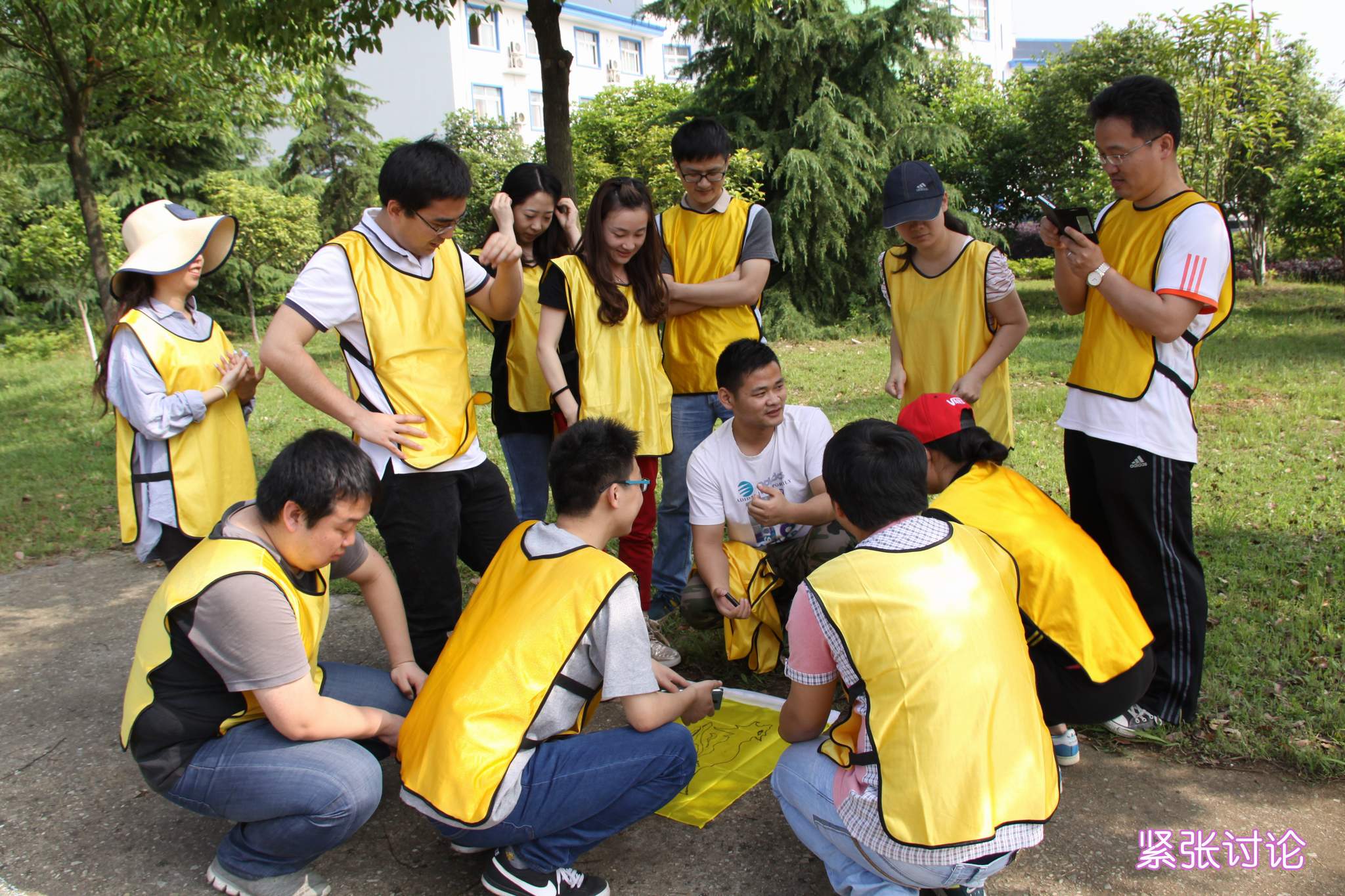 ??? 在下午的拓展訓(xùn)練中,每支隊(duì)伍要根據(jù)線索提示分別前往五個不同的地方完成任務(wù),而只有完成一個任務(wù)后,才能獲得下一個任務(wù)的線索。由于每個任務(wù)的地點(diǎn)相距較遠(yuǎn),因此這是對體力和腦力的雙重考驗(yàn)。隊(duì)員們充分發(fā)揚(yáng)團(tuán)隊(duì)精神,他們向周邊的游人說出接頭暗號,從幾十名游客中將接頭人尋找出來;他們互幫互助,保證了每名隊(duì)員都能參與并完成踢毽子游戲;他們集思廣益,用一張小小的A4紙張和一把剪刀,便能在不需要任何粘合工具的情況下制作出能夠容納所有隊(duì)員的圓環(huán);他們齊心協(xié)力,帶領(lǐng)體力不好的隊(duì)員堅(jiān)持完成了爬山越野。