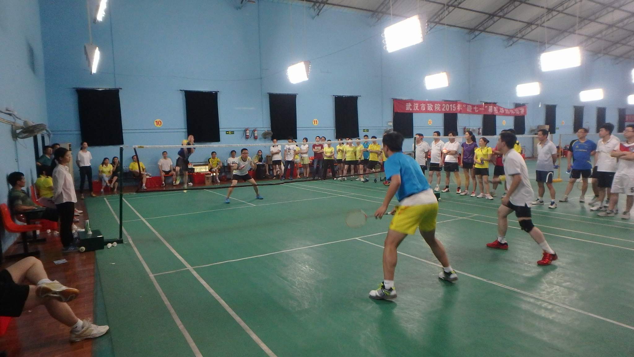 ??? 為了保證各支隊伍實力的均衡,公司幾位頗具實力的羽毛球選手并未入選參賽隊伍,但他們還是在正式比賽開始之前,為大家奉獻(xiàn)了一場精彩的表演賽,他們精彩的表現(xiàn),不僅贏得了現(xiàn)場觀眾的陣陣歡呼,也點燃了體育場內(nèi)的熱情。