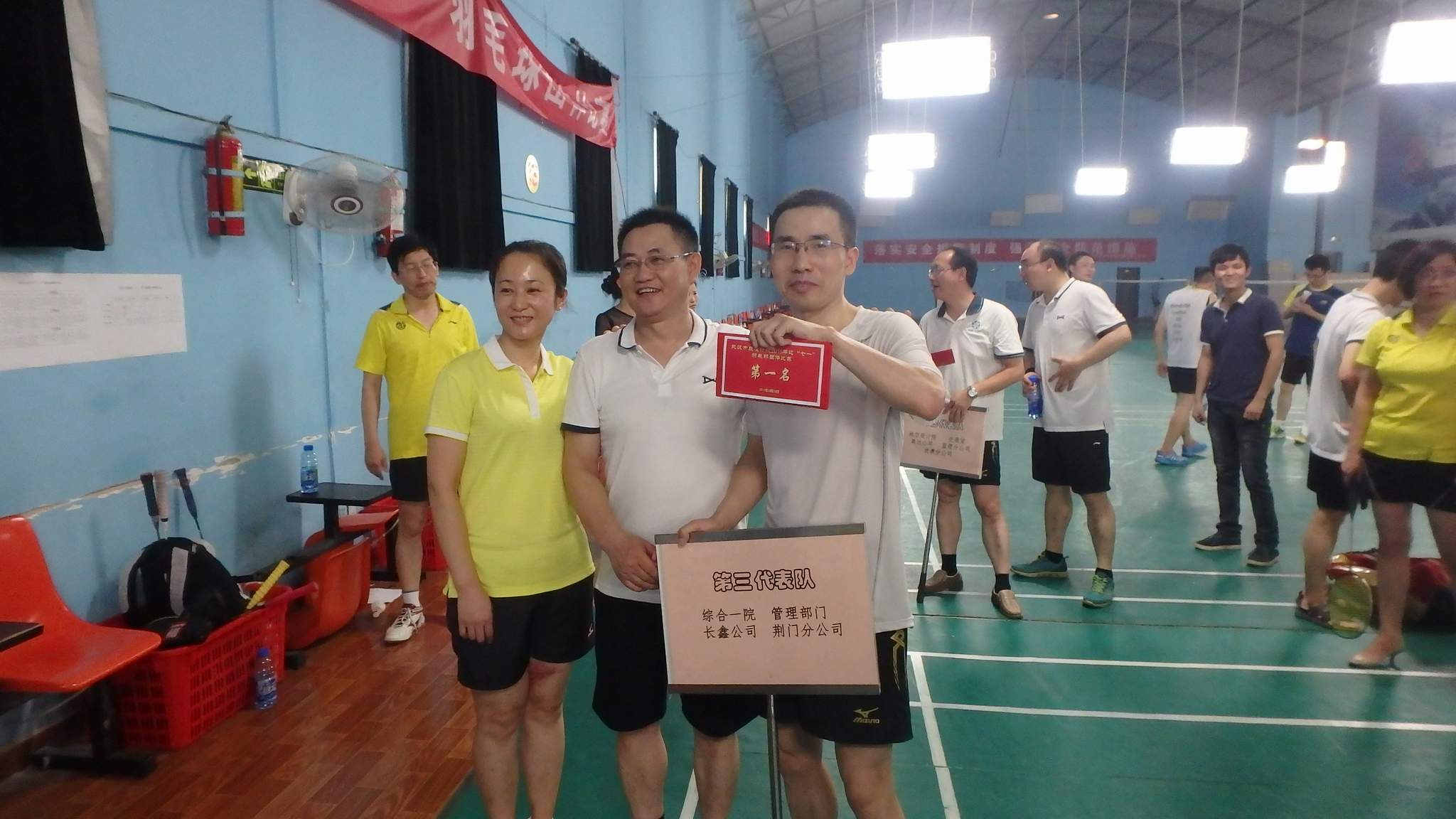 ??? 經(jīng)過三個小時激烈角逐,比賽全部結(jié)束。而富有戲劇性的是,有三支隊伍各勝了兩場,積分相同。在這種情況下,裁判組通過統(tǒng)計每隊勝場及勝負(fù)關(guān)系,由黨委書記蔡輝領(lǐng)銜、由綜合一院、管理部門、長鑫公司、荊門分公司聯(lián)合組成的第三代表隊獲得了最終的冠軍。