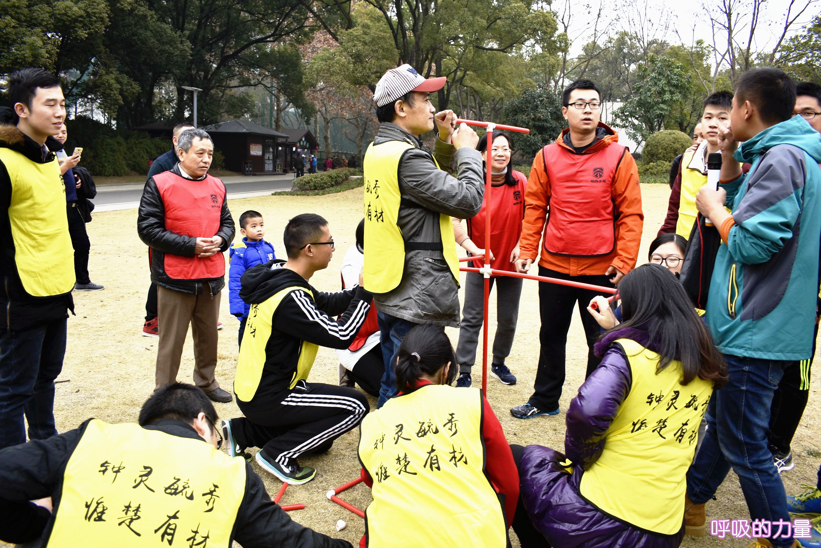 ??? 簡單的破冰游戲后,所有參與活動(dòng)的人員被分成四支隊(duì)伍,本著“友誼第一,比賽第二”的精神進(jìn)行了多種趣味項(xiàng)目的比拼:團(tuán)隊(duì)展示,隊(duì)員們要在五分鐘內(nèi)確定隊(duì)名、隊(duì)呼和隊(duì)形展示;同心群悅,全體隊(duì)員共同牽動(dòng)繩索控制鼓面,五分鐘內(nèi)獲取盡可能多的顛球次數(shù);呼吸的力量,由三男四女共同利用道具拼成七個(gè)進(jìn)氣孔、一個(gè)出氣孔的呼吸機(jī),并利用呼吸機(jī)吹破五個(gè)氣球;公主撕名牌,由四名女生扮演公主并挑選四名男生作為騎士分成四隊(duì)進(jìn)行相互撕名牌游戲;碰碰球,由公司和社保處各出五男五女共十人進(jìn)行接力碰碰球?qū)埂?/p>